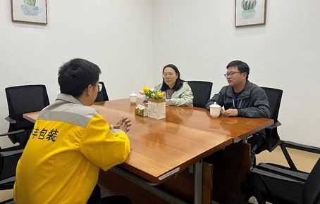 太仓济丰包装纸业有限公司的厂长宁健和人事科长刘仪热情接待了两位老师,对机电1951班的朱雨晨同学的岗位实习表现予以高度评价,并表示愿意与太仓中专开展进一步的合作,实现互利共赢。