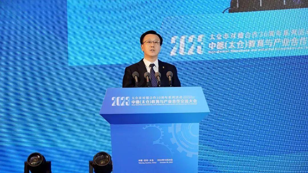 10月26日上午,2023中德(太仓)教育与产业合作交流大会在太召开,本次会议由江苏省教育国际交流协会、太仓市人民政府主办,苏州健雄职业技术学院、滚球app登录、中德职业教育产教融合联盟、江苏德国高职教育合作联盟承办。会议以“深化对德合作 产教协同发展”为主题,是太仓市对德合作30周年系列活动的重要组成部分。