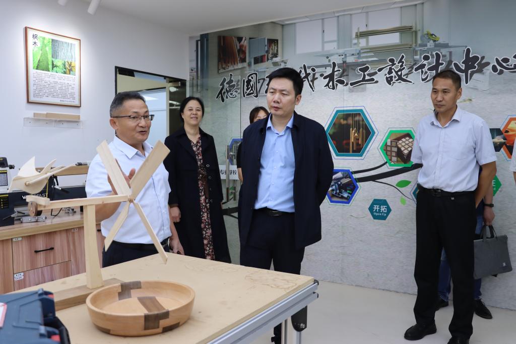 调研组考察了东仓路校区校内随美艺术设计培训中心、木工培训中心、休闲体育实训基地,机电、机械实训基地等场室,并和场室老师进行交流沟通,细致深入的了解了学校办学特色、学生实习实训管理等情况。