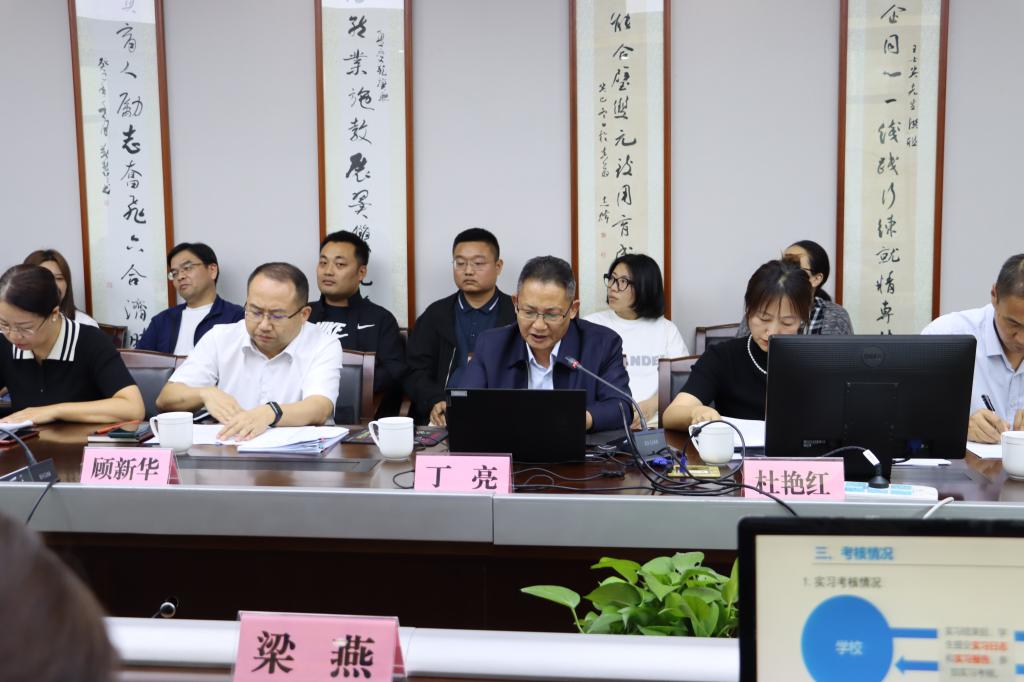 会上,丁亮校长首先对调研组专家百忙之中莅临我校表示欢迎,随后他从组织情况、管理情况、考核情况、实习安全、投诉处理、典型经验与做法等七个方面做了学生实习管理工作情况报告。