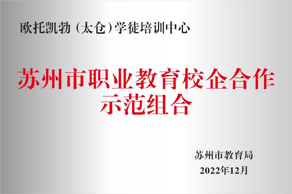 2018年10月,学校与欧托凯勃汽车线束(太仓)有限公司签约,校企行共建“双元制”学徒培训中心,培训中心建在欧托凯勃汽车线束(太仓)有限公司内部,按照“一校多企”现代学徒制治理结构,以企业为主导,校企共同培养机电设备技术、工业商务等专业技术人才。合作项目先后获评苏州职业教育市现代学徒制试点项目、苏州市校企合作示范组合、苏州市优秀企业(产业)学院等荣誉,2023年3月公司获评江苏省产教融合型企业。