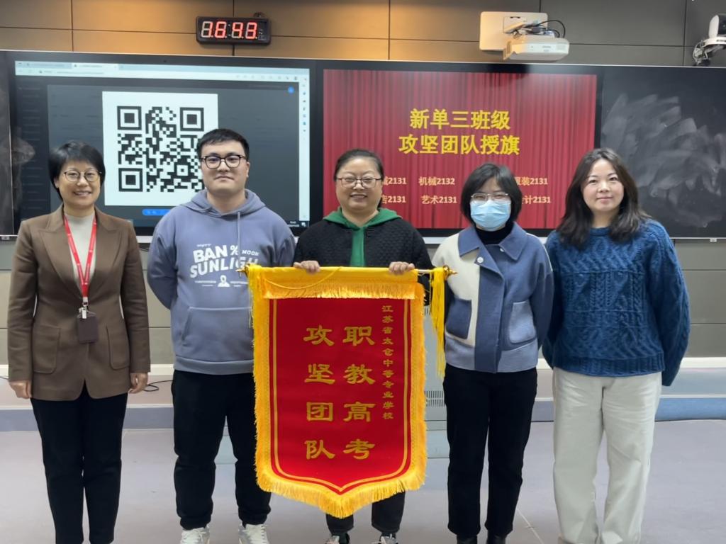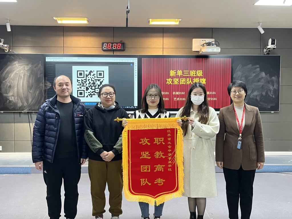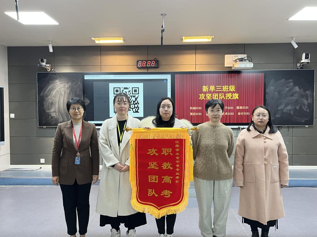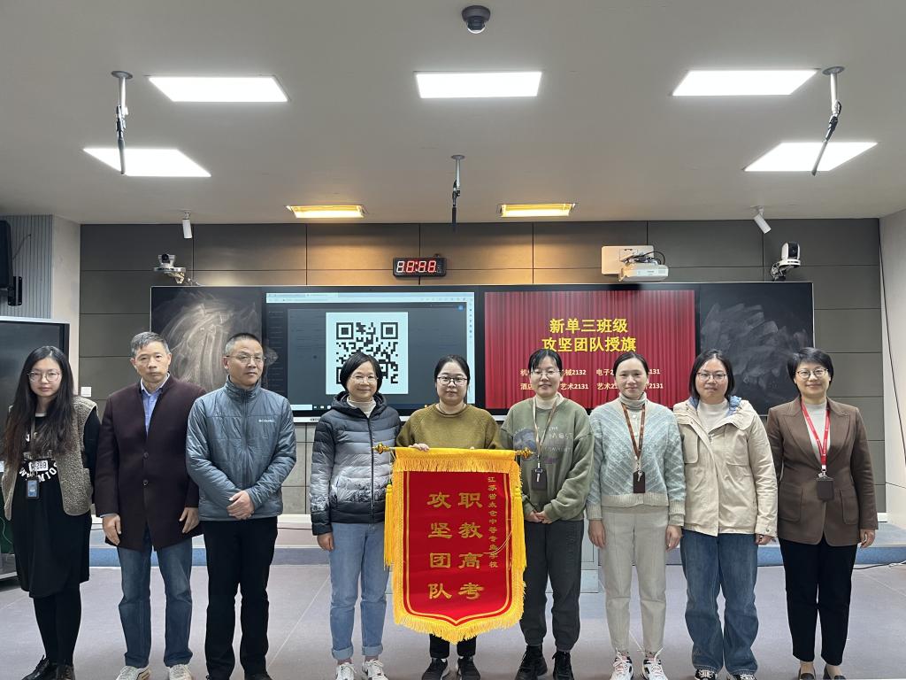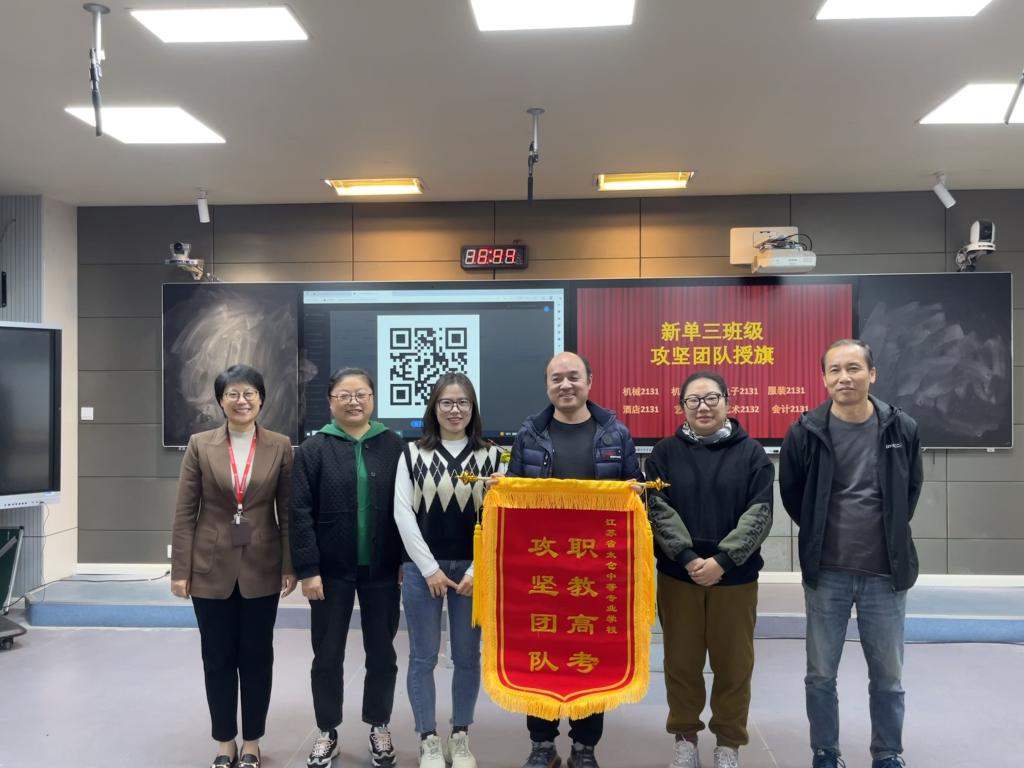 接着,由殷利副校长为新单三班级攻坚团队授旗,陆伟主任公布《滚球app登录对口单招高考质量奖励方案》以及2024届对口单招本科线班级目标。殷利副校长肯定了单三教学团队的辛勤付出,希望在备战2024届职教高考中单三教学团队能够心往一处使,全心全意为学生服务,在明年的职教高考中完成目标并力争突破。