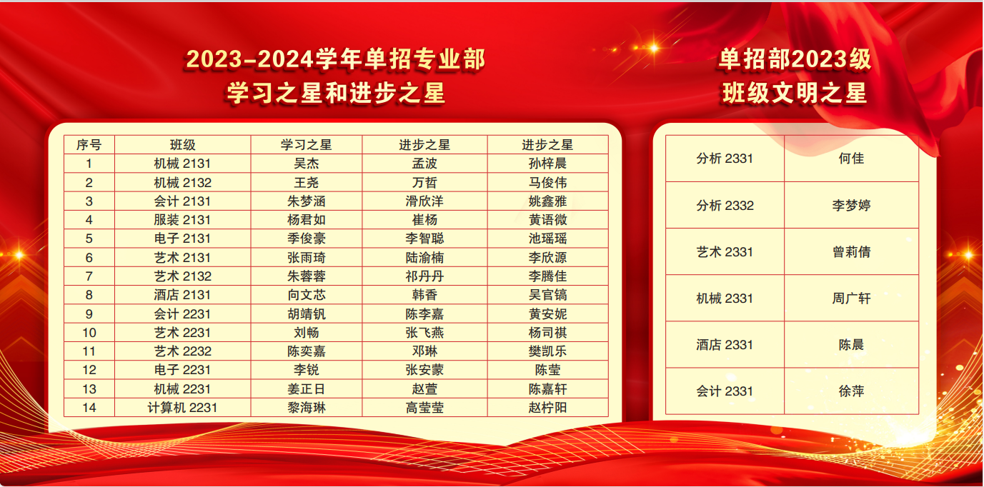 2022-2023学年单招专业部学生学习之星、进步之星和文明之星