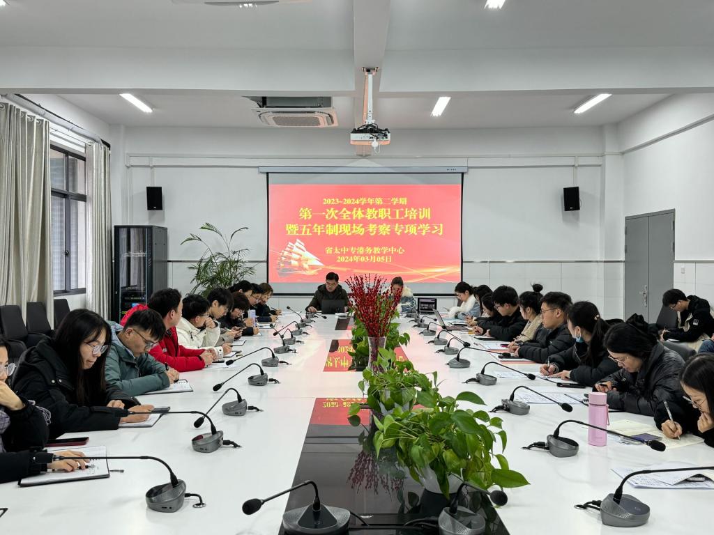 2024年3月5日下午,港务教学中心于511会议室召开2023-2024学年第二学期全体教职工培训及五年制现场考察专项学习,本次活动由港务教学中心黄振贤主任主持,田中平副校长、张萌副主任与中心全体教职工参与。