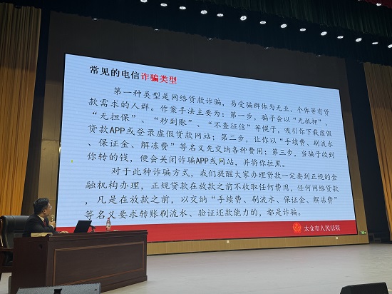 讲座开始,朱法官以一本法律书籍为引入,吸引学生了解刑法的法律条例。其次朱法官以常见犯罪类型暨电信诈骗预防为主题进行了别开生面的分享。朱法官以前期调研的学生目前的年龄段以及常见不良行为为基础,对学生应有的法制责任以及如何提高自身的法律意识、安全素质等问题进行了详细的讲解,并结合一些生动鲜活、触目惊心的案例,通过联系实际,以案释法,以法论事,告诫同学们必须引以为戒,增强法制观念,提高法律意识。朱法官还为同学们介绍了遵纪守法、运用法律维护自己的合法权益、预防犯罪、打击犯罪及自我防范和保障生命安全的一些方法和策略,尤其是关于电信诈骗,进行了重点的警示教育,具有很强的针对性和实用性。