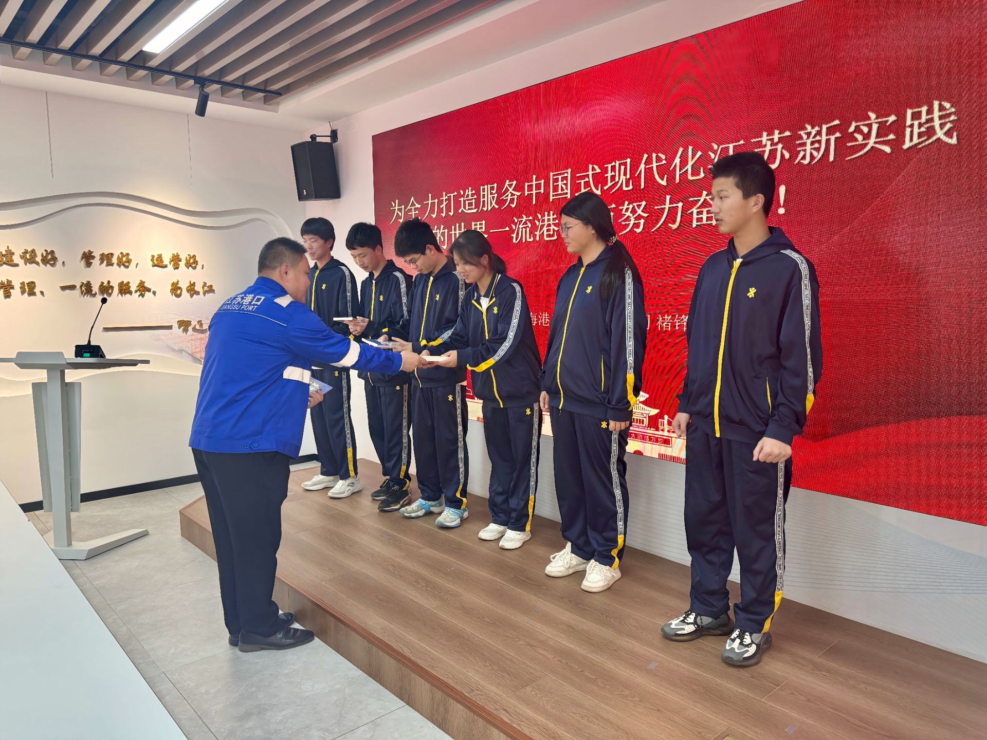 苏州港作为全国首个年集装箱吞吐量突破千万标箱的内河港,连续15年领跑长江港口发展。抵达太仓四期码头后,首先,同学们在工作人员的带领下,登上观景台,近距离观摩全球领先的全自动起重机作业场景。巨大的机械臂精准抓取集装箱,无人运输车穿梭有序,信息化系统实时调度,让同学们直观感受到智慧港口的效率与创新,为后续的研学活动奠定了实践认知基础。