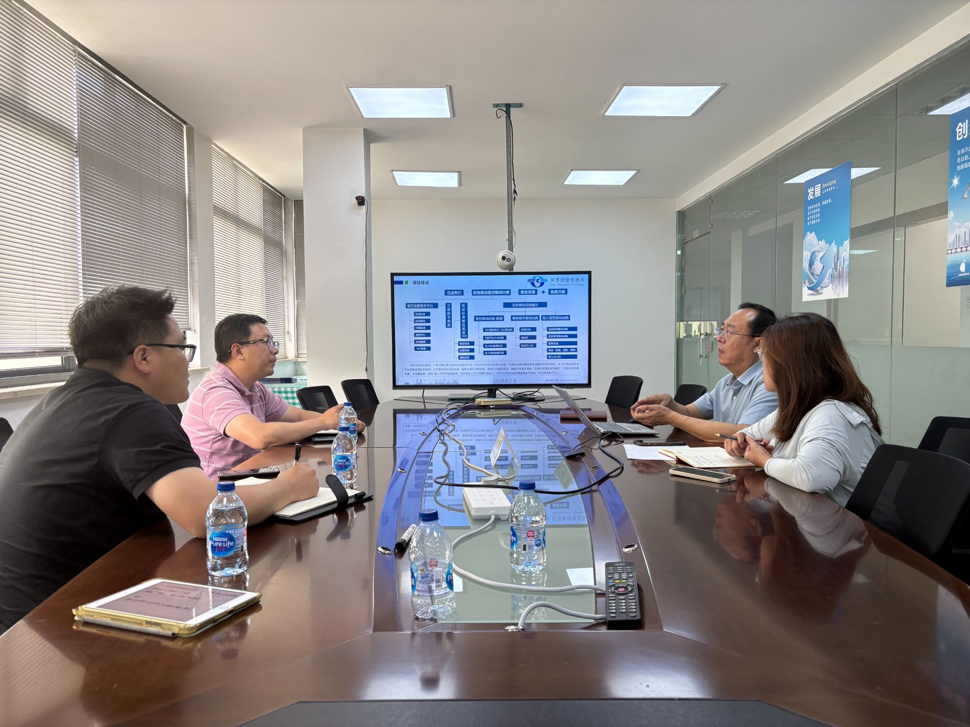 在调研总结阶段,校企双方就低空经济产业规划与专业建设开展了深入讨论。刘天雄就无人机应用技术应用场景、课程体系构建等核心问题,与企业进行了深入交流,重点探讨了理论教学与实践教学的有机衔接方案。邵谦针对专业人才就业方向、岗位能力要求等,与企业展开交流,详细了解行业用人标准和发展通道,为后续完善人才培养方案提供了重要参考。赵阳在总结时强调,学校将以此调研学习为契机,进一步深化产教融合、校企合作,学校将充分吸收企业建议,优化人才培养方案,创新人才培养模式,为太仓低空经济发展培养更多高素质技术技能人才。