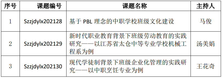 苏州市职教学会学术分会秘书长李建红、江苏省常熟中等专业学校校长徐丽娟、江苏省吴江中等专业学校校长潘莉萍、苏州工业职业技术学院科技处处长刘绪军四位专家应邀出席。学校丁亮校长、三个课题的主持人及核心成员参加了活动,课题结题评审会由教师发展处副处长陆清漪主持。