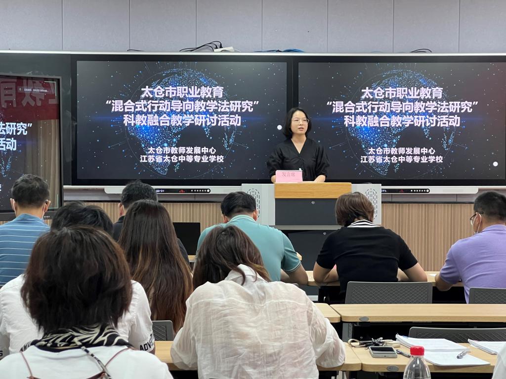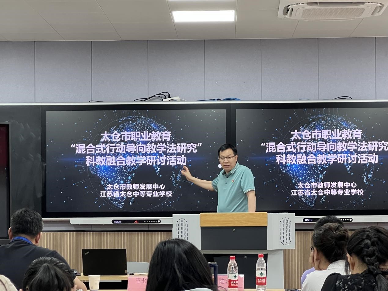 为了进一步加强数字技术在课堂教学中的应用,扎实推进现代学徒制培养模式教学层面实施,2023年6月14日,滚球app登录承办了太仓市职业教育“混合式行动导向教学法”科教融合教学研讨活动。太仓市教师发展中心王七林书记、科研处严乃超主任、职教教研员黄志杰老师、学校书记陆金华、副校长王成忠、教师发展处陆清漪副处长、学校在研课题人员、电商、机电、电子教研室成员、殷利名师工作室成员等40余人参加了活动。活动依托第五期江苏省教改课题“基于“双元e+”构建中职混合式教学模式的实践研究”开展,包括理论培训、课堂展示、分组评议、交流分享、专家指导五个环节,由陆清漪副处长主持。
