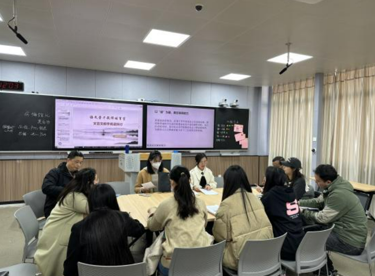 为进一步提高培育室教师的教学水平,搭建教研交流平台,推进素养导向下的文言文教学改革实践,2023年12月8日在港务录播教室举行了沿课标之向,研文言之法——语文骨干教师培育室开展素养导向下的文言文阅读教学研讨活动。培育室成员参加了本次听评课及研讨活动。