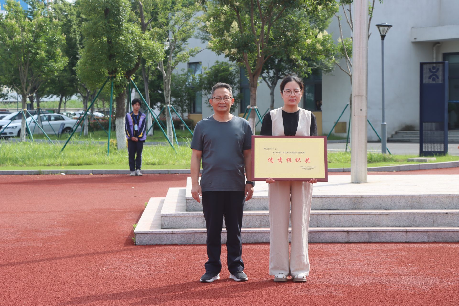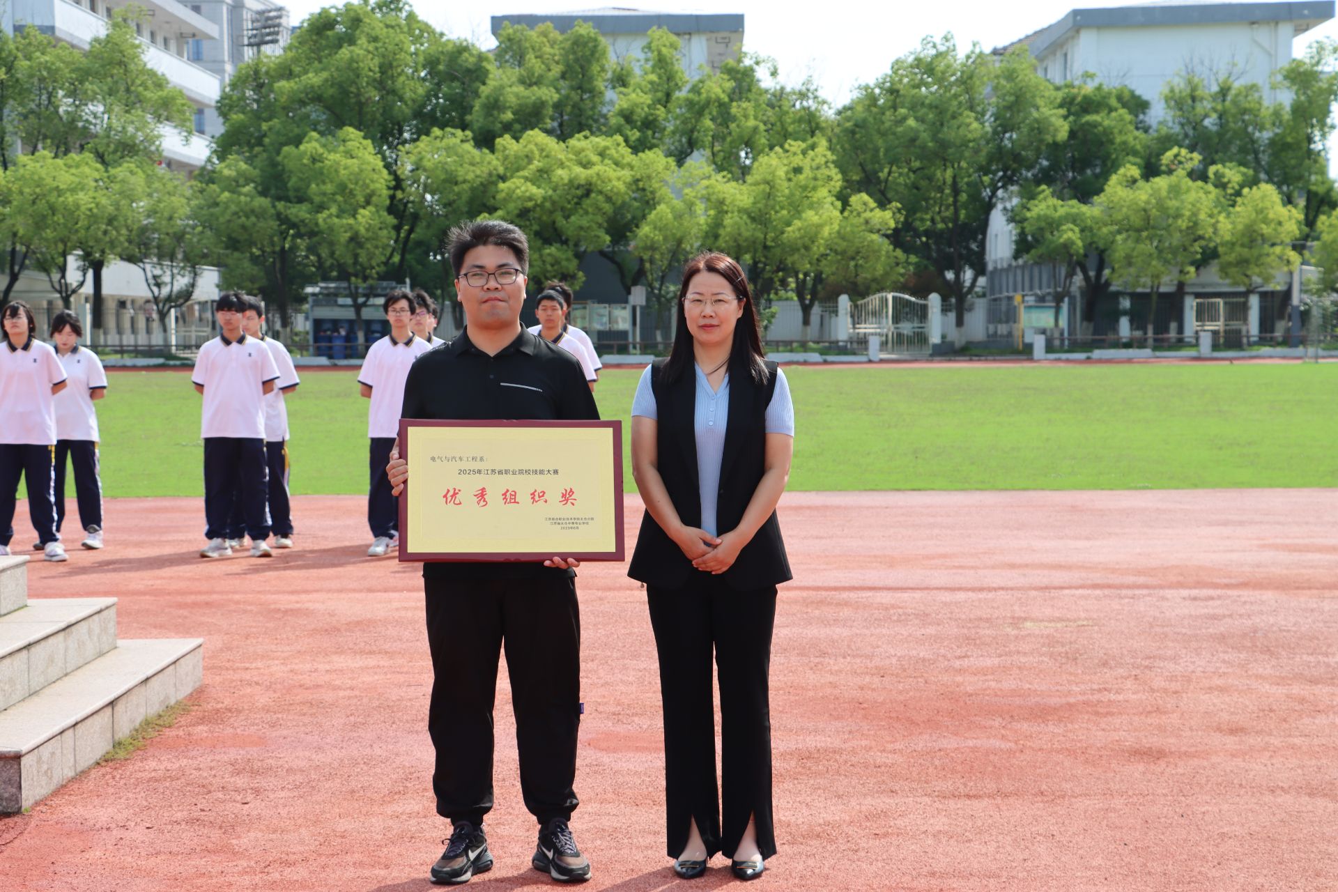 活动中宣读了在2025年省级技能大赛中获奖的师生及指导老师名单,并对在省赛中辛勤付出的指导老师及获奖师生进行了表彰。学校还对在省技能大赛组织工作中表现突出的单位商务教学中心和电气与汽车工程系颁发了“优秀组织奖”。