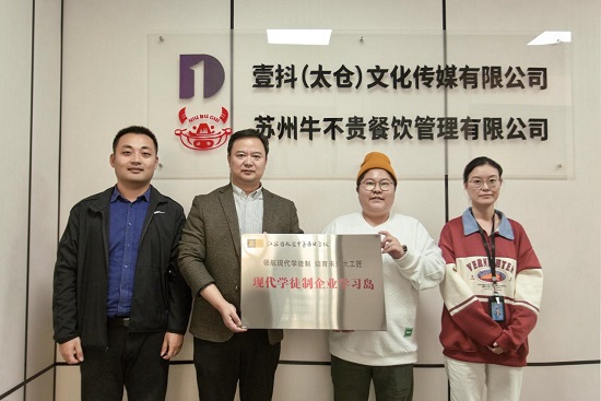 我校领导、老师一同先行来到了壹抖(太仓)文化传媒有限公司,公司负责人姚瑶总经理分享了该公司的主营业务、企业现状、自身成长经历等等,从23年电商专业委员会会议、课程开发会议、企业课程以及多次我校校企接触的过程中,感受到校企共同培养学生的意义重大,姚总也表示能参与到共同培养学生的过程中,能为电商行业输出一些新鲜血液而尽一份力。同时王校也为壹抖传媒颁发了现代学徒制企业学习岛的授牌仪式,师生能依托学习岛平台共同成长、进步。
