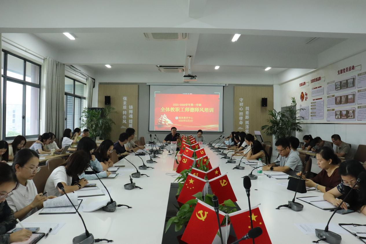 2025年9月9日,商务教学中心在商务A-511会议室召开了 2025 - 2026 学年第一学期开学工作会议暨师德师风专题培训,旨在明确新学期工作方向,提升教师队伍整体素质。会议由副校长王成忠主持,商务教学中心主任李芫以及全体教职员工参加。