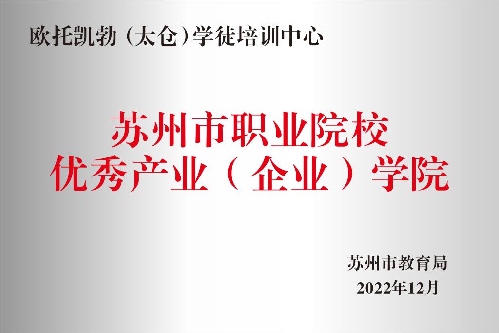 2018年10月,学校与欧托凯勃汽车线束(太仓)有限公司签约,校企行共建“双元制”学徒培训中心,培训中心建在欧托凯勃汽车线束(太仓)有限公司内部,按照“一校多企”现代学徒制治理结构,以企业为主导,校企共同培养机电设备技术、工业商务等专业技术人才。合作项目先后获评苏州职业教育市现代学徒制试点项目、苏州市校企合作示范组合、苏州市优秀企业(产业)学院等荣誉,2023年3月公司获评江苏省产教融合型企业。