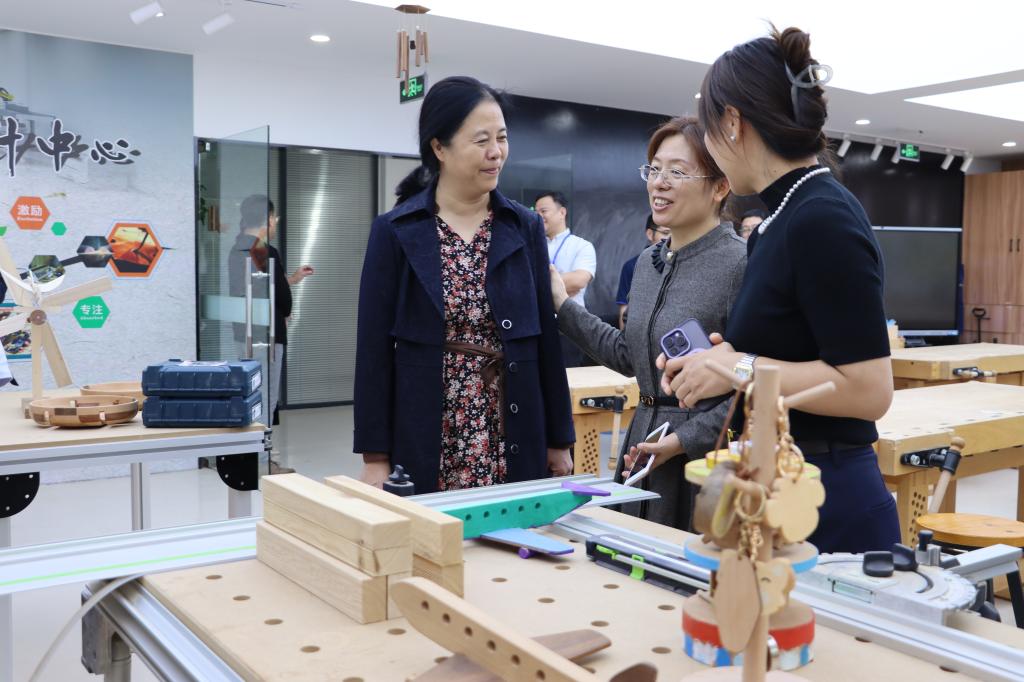 调研组考察了东仓路校区校内随美艺术设计培训中心、木工培训中心、休闲体育实训基地,机电、机械实训基地等场室,并和场室老师进行交流沟通,细致深入的了解了学校办学特色、学生实习实训管理等情况。