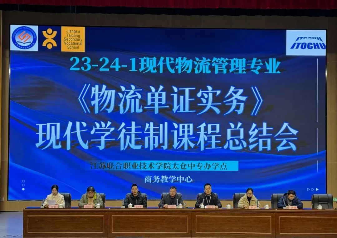 为进一步推进现代物流管理专业现代学徒制工作,加强校企合作,提升企业课程教学质量,培养高素质技术技能人才。2024年1月10日,商务教学中心在太仓中专港城校区报告厅举行物流2151班《物流单证实务》现代学徒制课程总结会。伊藤忠(中国)物流有限公司太仓分公司副总刘飞、工会主席黄轶君、人事部经理张晖等企业嘉宾出席了会议,太仓中专副校长王成忠、副主任李芫、国商教研室主任屠旻、物流教研室主任金潭以及现代物流管理专业全体学生和物流2151班学生家长参加了会议,本次课程总结会由商务教学中心主任陆志良主持。