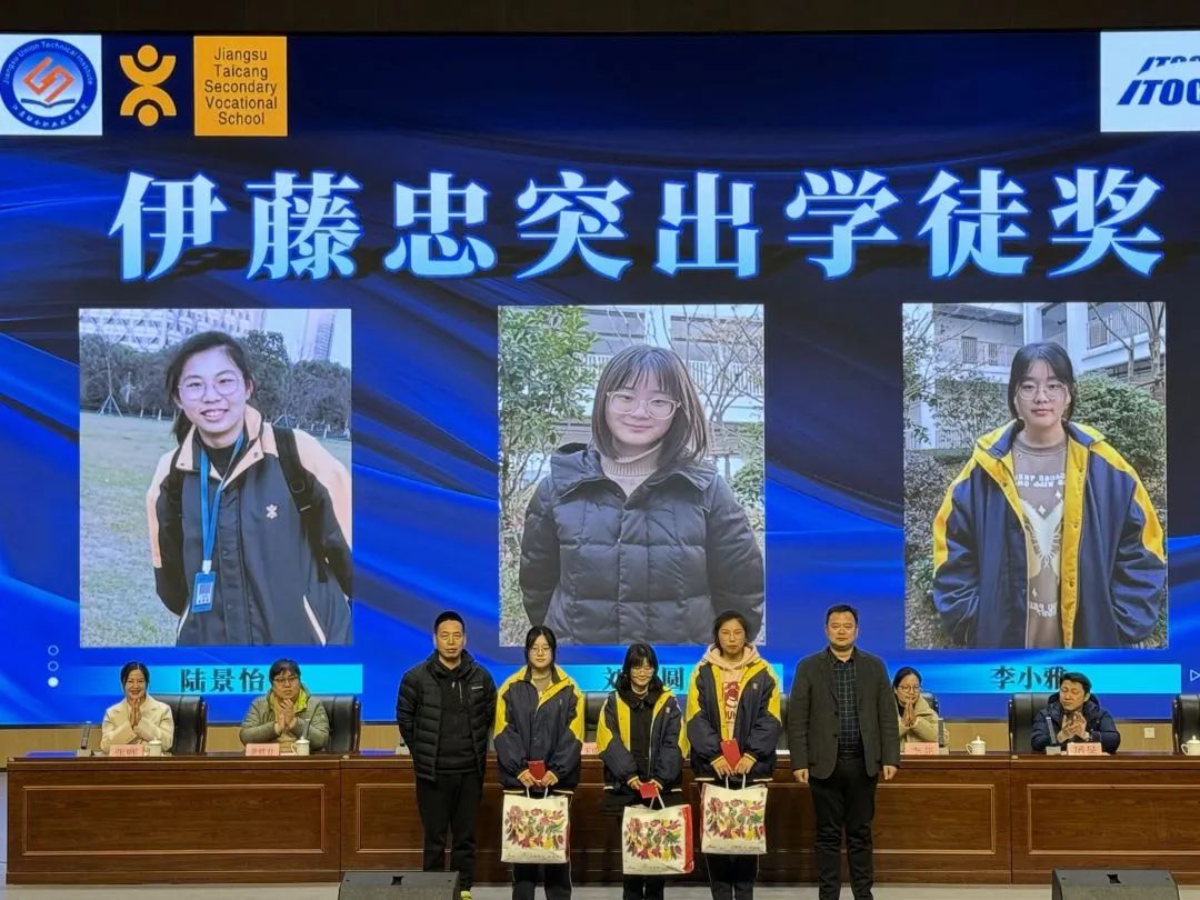 活动现场,刘飞和王成忠为突出学徒奖3人、优秀学徒一等奖21人、二等奖7人、三等奖4人,颁发了由伊藤忠公司提供的奖品。获奖名单由伊藤忠公司根据学徒课程学习表现综合考核确定。