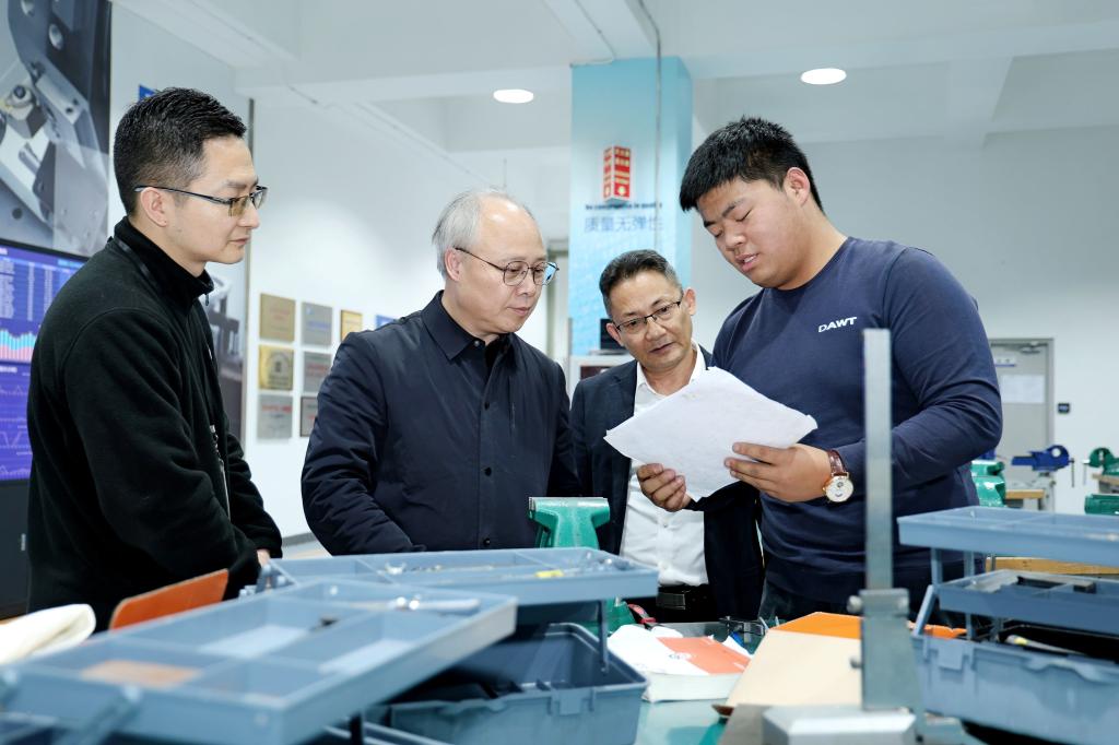 校内实地考察在3月20日下午和3月21日上午进行。专家组先后考察了港城校区和东仓路校区。在港城校区,专家组考察了E融商现代物资实训基地和港务与信息实训基地;在东仓路校区,专家组考察了现代木工设计中心、随美艺术设计现代学徒制培训中心(省中小学职业体验中心)、健身指导实训基地、太仓市产业工人赋能站(省现代化实训基地)和机电设备安装与维修实训基地(省现代化实训基地),并参观了学生社团作品展示。