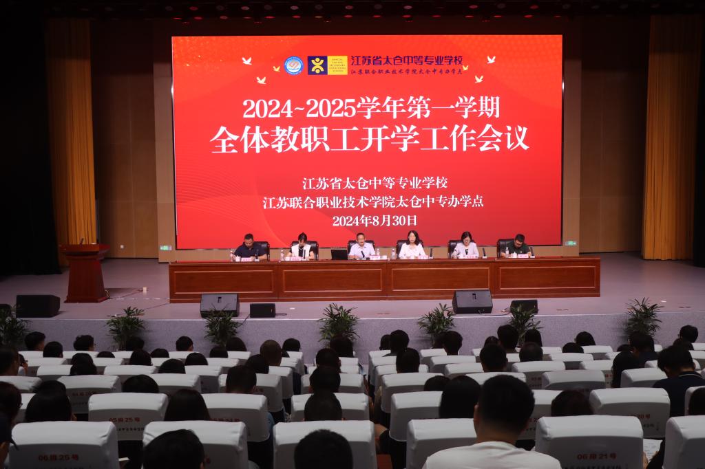 2024年8月30日上午,省太中专2024-2025学年第一学期全体教职工开学工作会议暨师德师风培训在港城校区报告厅顺利举行,校党委副书记、校长陆金华等校级领导班子、党委委员和全体教职工参加了本次会议,会议由校党委书记丁亮主持。