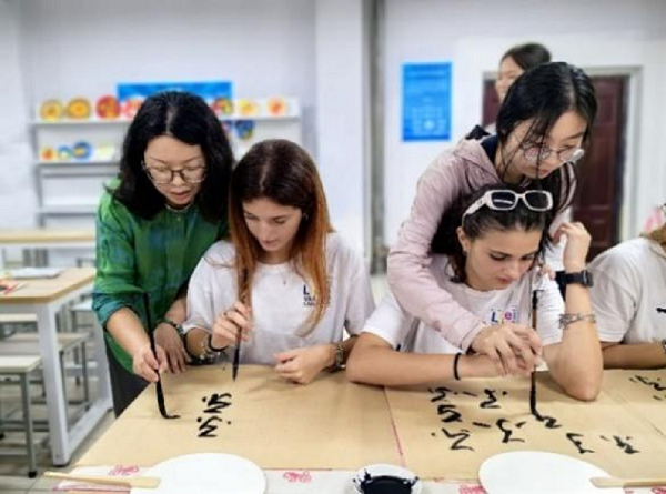 9月18日下午,在艺术系专业老师的指导下,意大利学生们体验了毛笔书法,感受了中国文字的历史与智慧。