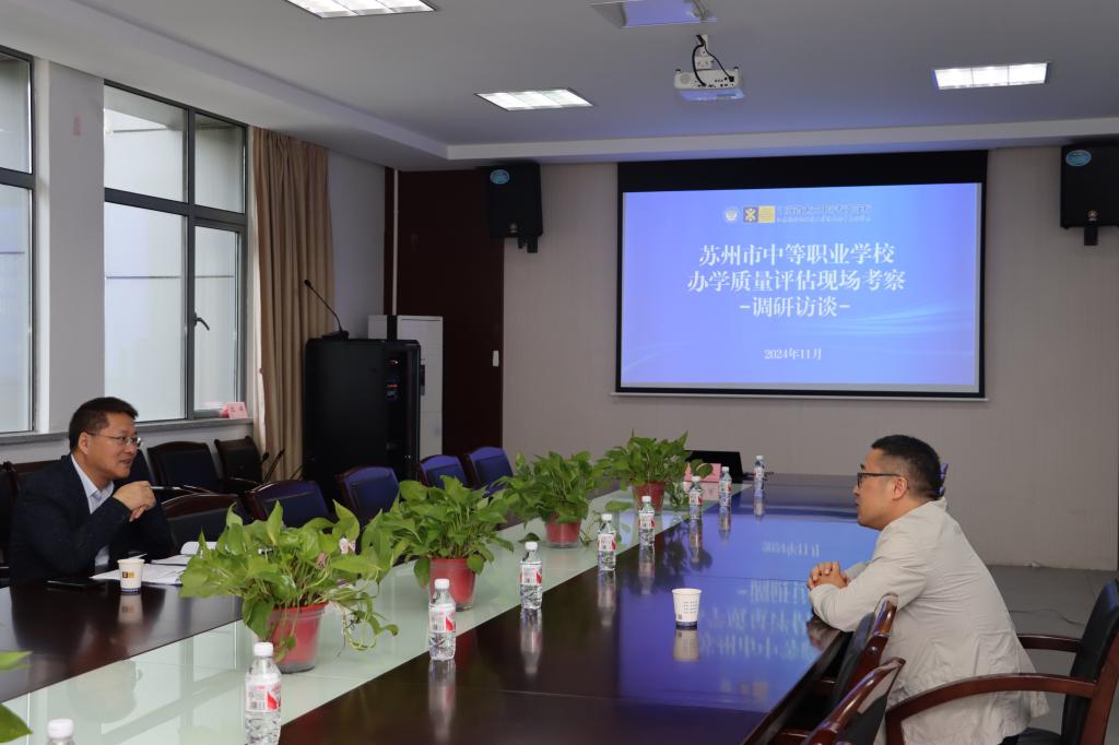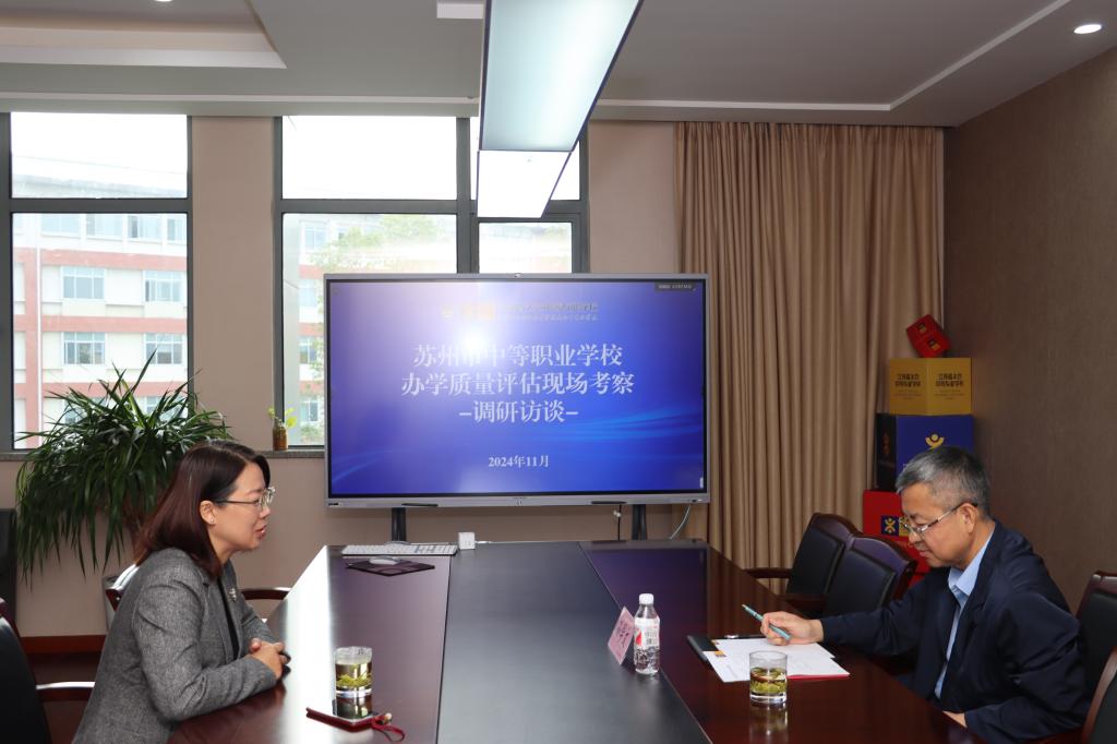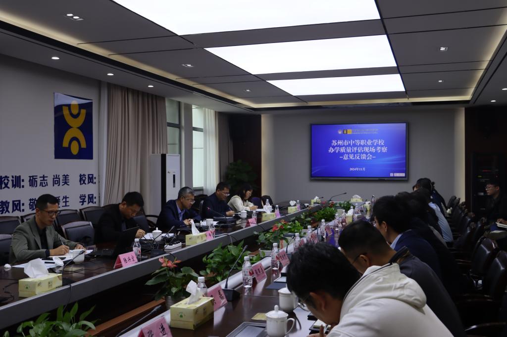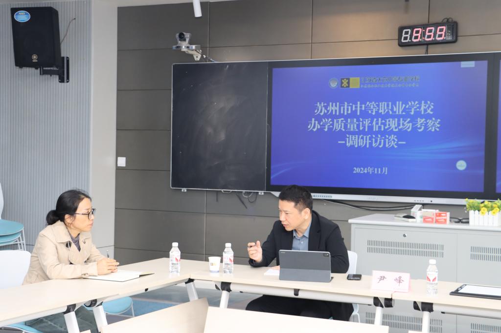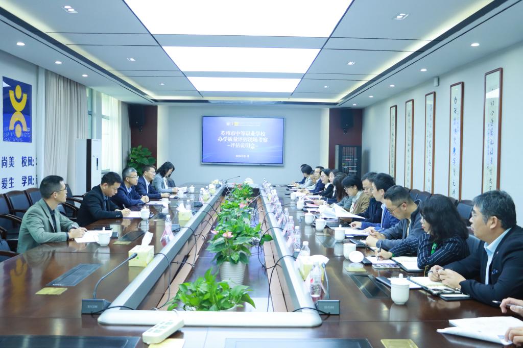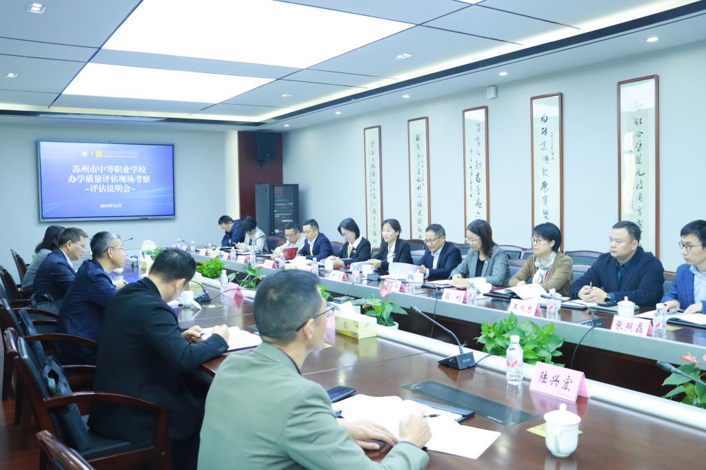 2024年11月13日,滚球app登录(简称太仓中专)迎来苏州市中等职业学校办学质量评估现场考察。此次评估旨在推动苏州现代职业教育高质量发展,进一步提升职业学校的办学实力和人才培养质量。评估专家组由苏州市职业大学副校长孙学文(组长),苏州卫生职业技术学院原教务处处长於学良(组员),张家港市第三职业高级中学党总支书记尹峰(组员),江苏省张家港中等专业学校副校长叶绪娟(组员),江苏省苏州丝绸中等专业学校副校长陆兴宏(组员)等5人组成。