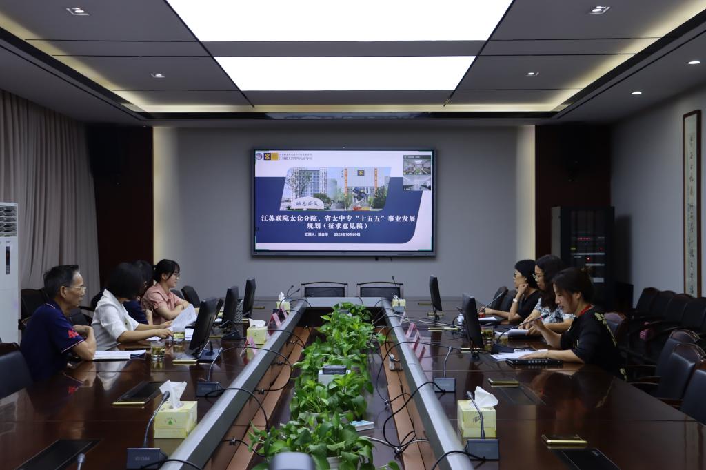 2025年10月9日下午,江苏联院太仓分院(太仓中专)“十五五”事业发展规划编制专题研讨会在东仓路校区尚德楼304会议室顺利召开,港城校区在尚德楼702会议室线上参会。市教育局高等教育与职社教育科科长苏青青,太仓双元制教育研究院院长周新源,研究员张建忠、何英菲等嘉宾出席了会议,学校党委书记丁亮、校长陆金华等校级领导参加了本次会议,会议由我校副校长杜艳红主持。