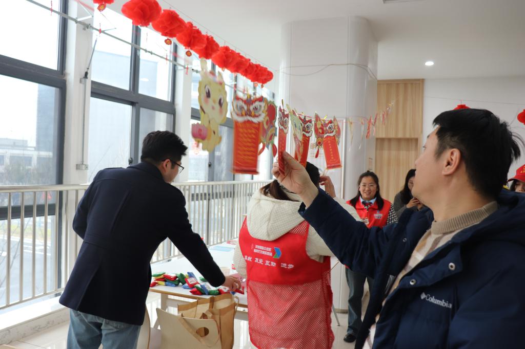 活动现场的布置充满了吉祥如意和浓厚的节日气息,悬挂各色谜语彩条,组织人员精心准备了上百道谜题,内容主要涵盖党的历史知识、法律和精神文明建设,以及成语谜、人物谜、历史谜、动植物谜等方面,还巧妙添加了与中心职能工作、优化服务等相关的谜题,内容丰富多样、妙趣横生,既具娱乐性、又有知识性,大家热情高涨,踊跃参与,现场洋溢着喜庆热闹的节日气氛。