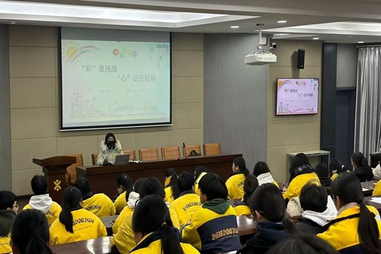 2024年 12月26日,滚球app登录两校区开展了主题为《走向实习岗位,你做好心理准备了吗》、《‘职’面挑战、‘心’适应秘籍》的心理讲座,讲座由学校专职心理教师朱彤彤、社工老师陈思宇主讲,全体岗位实习班级参加。