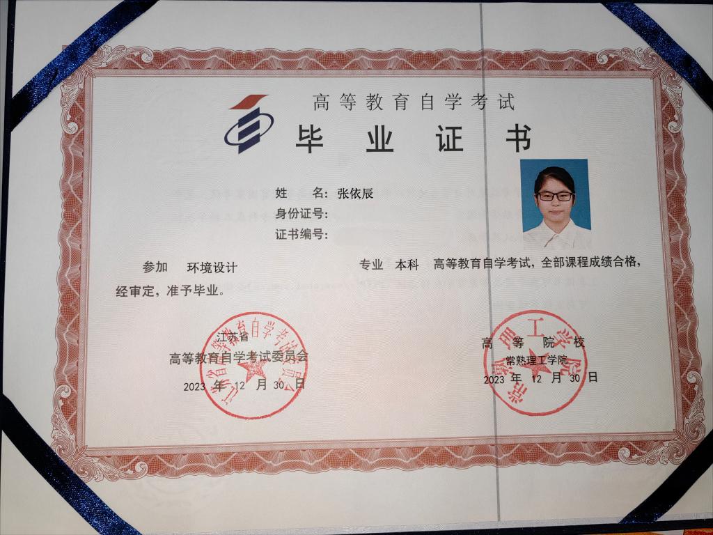 通过参加常熟理工特色自考,她不仅学到了专业知识,更重要的是学会了如何学习。她学会了如何设定目标、如何规划时间、如何面对挑战以及如何在失败中汲取教训。她认为,这些经验和技能将对她的未来职业生涯和个人发展产生深远的影响。2023年12月,张依辰顺利拿到了本科毕业证书。
