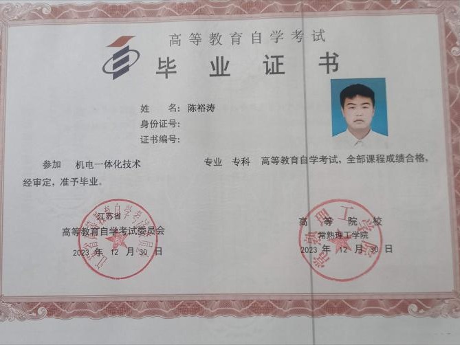 高二的时候,看到原来的初中同学,都在为后面的学历提升做准备,我也有点心动。但如果选择职教高考,我就要离开学徒生队伍,这又是我不愿意的。在我面临人生中的第二次选择时,感谢我的班主任徐徐老师,她给我们全班带来了关于常熟理工特色自考的消息,特色自考不仅能帮助我们学徒生解决学历提升,因为在学校利用周末的空余时间来学习,还大大节省了提升学历的时间,能让我以同样三年的学习时间同时获得中专和大专的毕业证书。