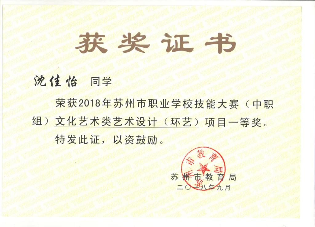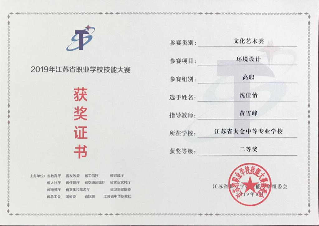 在校期间,她凭借卓越的专业表现,成绩始终名列前茅,赢得了2015至2019年度校级三好生及单项表扬生的综合荣誉。此外,她还代表学校出征江苏省职业院校技能大赛的环境艺术项目,并以出色的创意与技艺获省赛一等奖,展现了她扎实的专业技能。在校园生活中,她同样活跃于各项文体竞赛之中,特别是在2019年苏州市文明风采大赛中,她的作品更是荣获绘画组一等奖,充分展现了她在艺术设计中的天赋。