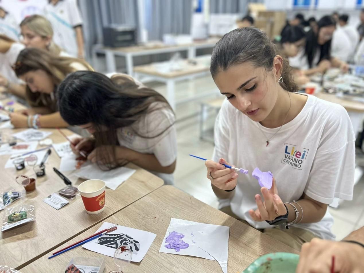 在太仓与意大利马切拉塔市友好城市关系日益深化的背景下,近日滚球app登录迎来了一批特殊的客人——马切拉塔的学生团。9月18日,一场以“续写中意友好,体验职教魅力”为主题的文化交流活动在学校顺利举行,当天下午由艺术设计系师生接待学生团,一起参与社团活动,体验中国传统文化,交流校园生活。